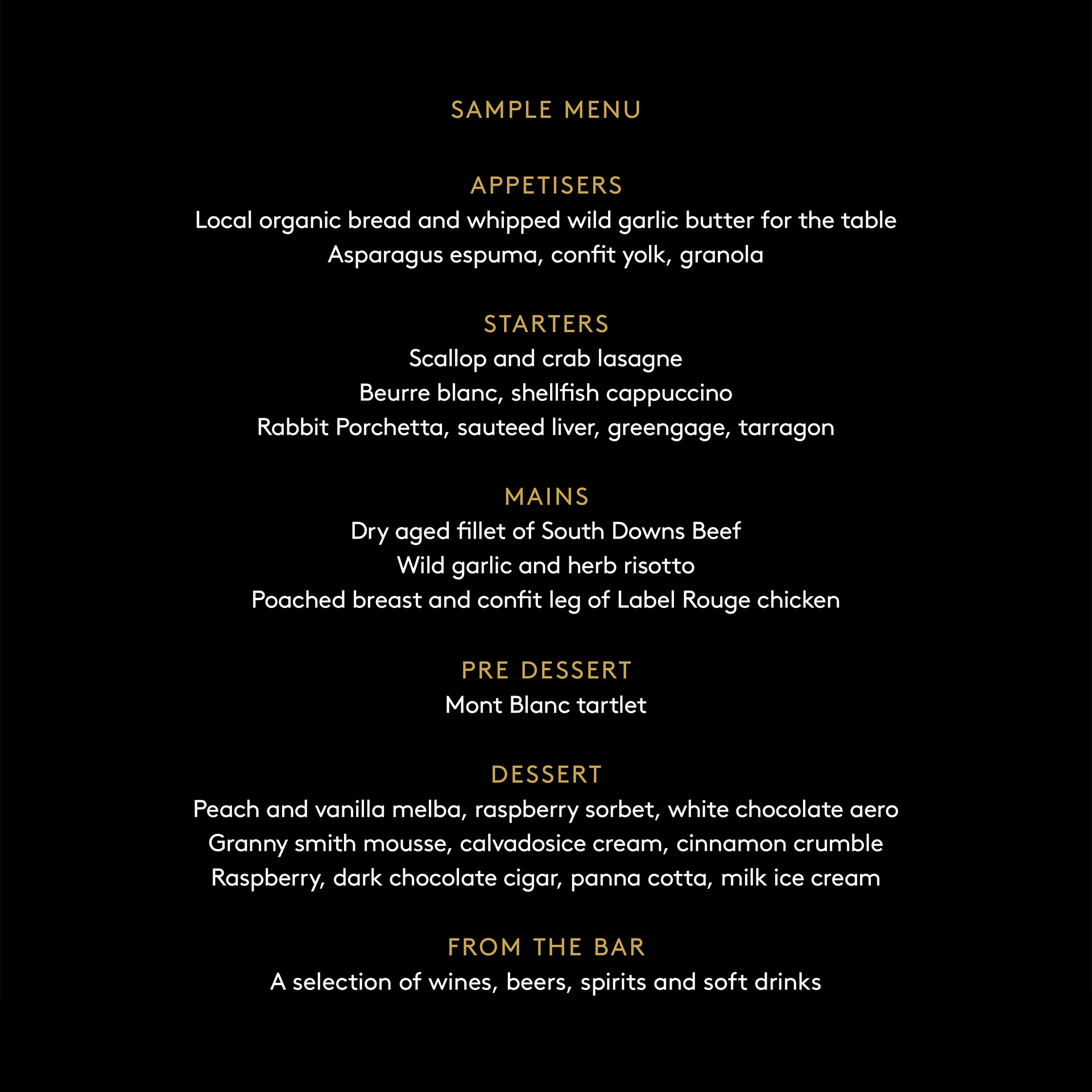 View sample menuBe part of something special